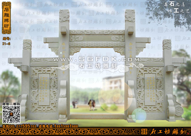 石工坊雕刻工廠其它石牌坊:單門石牌坊】 【立柱式牌坊】 【頂蓋式牌樓】 【大型石牌坊