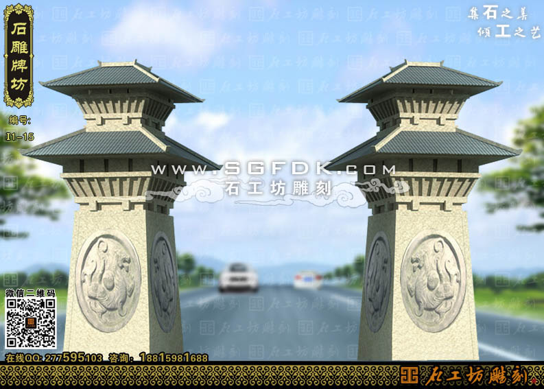 石工坊雕刻工廠其它石牌坊:單門石牌坊】 【立柱式牌坊】 【頂蓋式牌樓】 【大型石牌坊