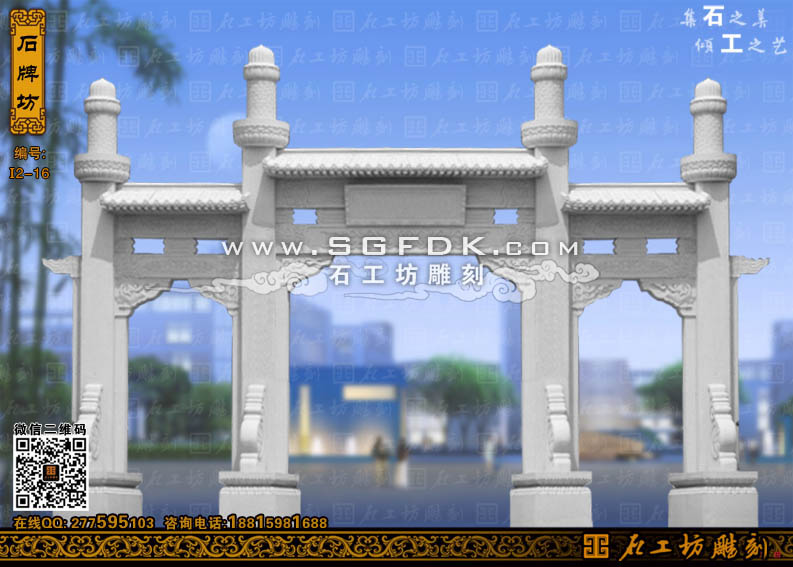 石工坊雕刻工廠其它石牌坊:單門石牌坊】 【立柱式牌坊】 【頂蓋式牌樓】 【大型石牌坊