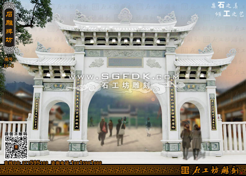 石工坊雕刻工廠其它石牌坊:單門石牌坊】 【立柱式牌坊】 【頂蓋式牌樓】 【大型石牌坊