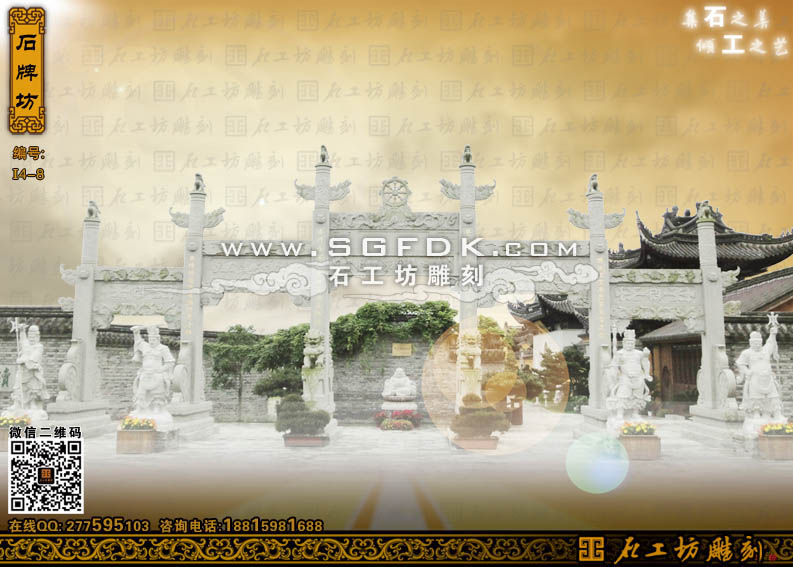 石工坊雕刻工廠其它石牌坊:單門(mén)石牌坊】 【立柱式牌坊】 【頂蓋式牌樓】 【大型石牌坊