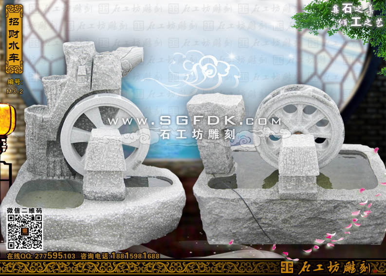 石雕水車