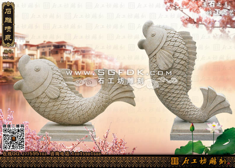 石雕鯉魚噴泉景觀