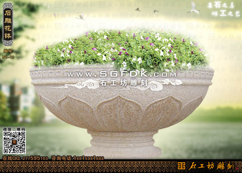 石工坊雕刻工廠其它石花缽石花盆:【