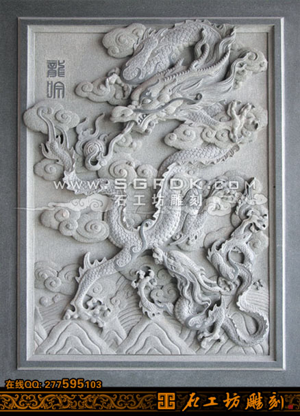 石雕龍騰云海浮雕圖
