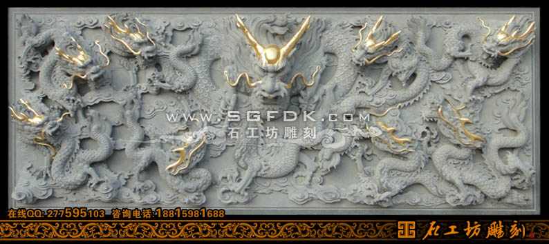 青石浮雕九龍堵雕刻