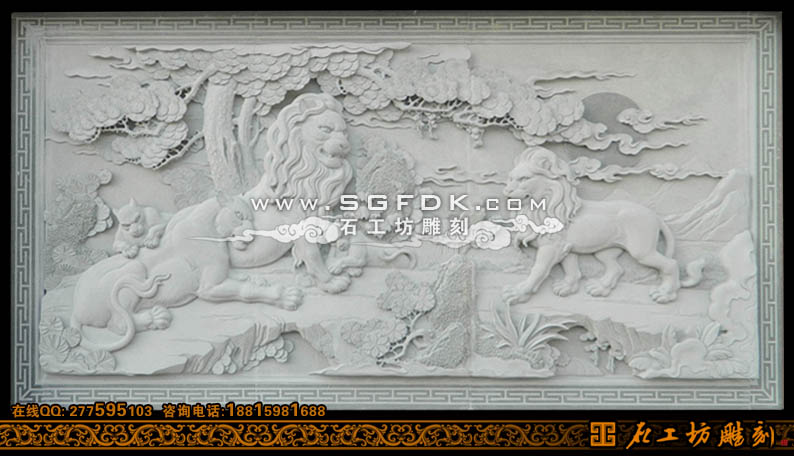 青石浮雕五獅呈祥雕刻