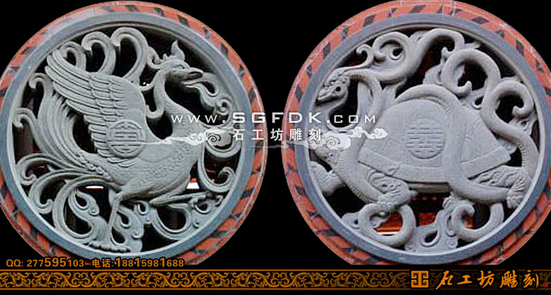 石雕透雕窗朱雀玄武