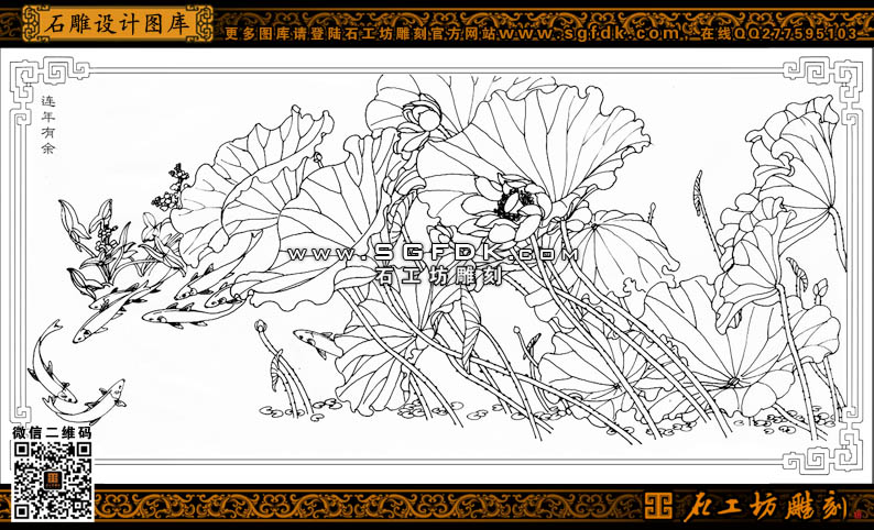 花鳥(niǎo)白描圖年年有余