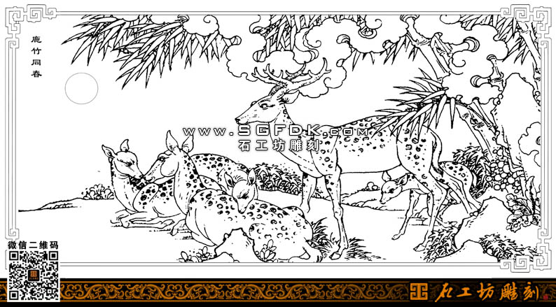 石雕圖紙設(shè)計鹿竹同春白描圖