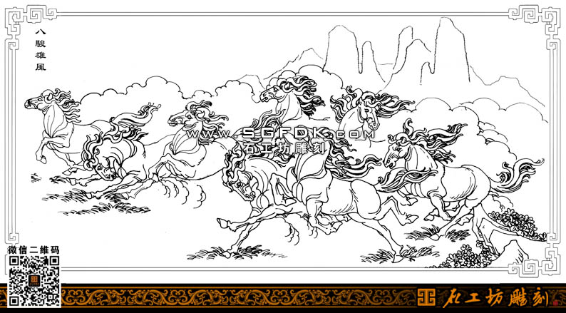 石雕圖紙?jiān)O(shè)計(jì)八駿雄風(fēng)白描圖