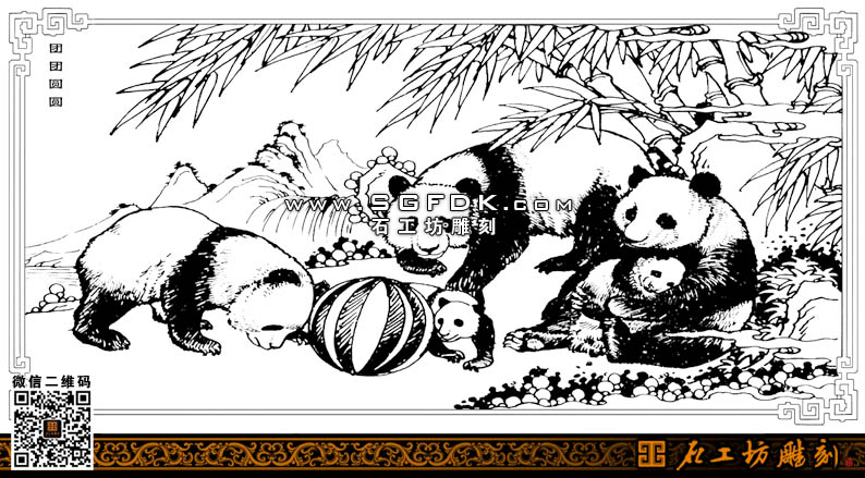 石雕圖紙?jiān)O(shè)計(jì)團(tuán)團(tuán)圓圓白描圖