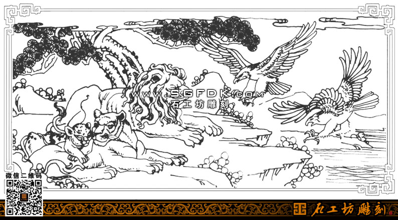 石雕設(shè)計(jì)圖庫(kù)-鷹獅爭(zhēng)霸圖