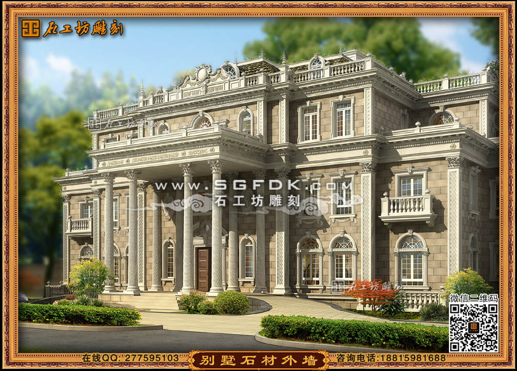 【別墅效果圖設(shè)計(jì)】 【石材外墻施工案例】【歐式大門雕刻】 【歐式浮雕堵】 【石雕羅馬柱】