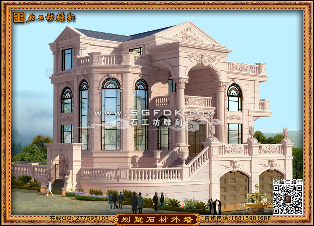 【別墅效果圖設(shè)計(jì)】 【石材外墻施工案例】【歐式大門雕刻】 【歐式浮雕堵】 【石雕羅馬柱】