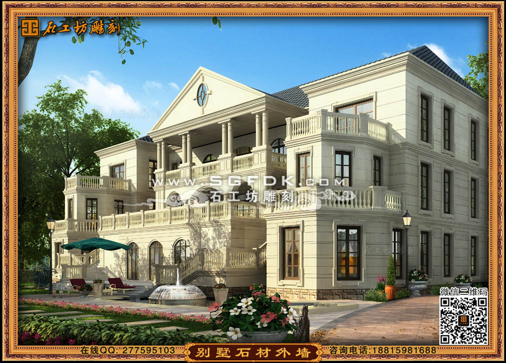 別墅效果圖設(shè)計】 【石材外墻施工案例】【歐式大門雕刻】 【歐式浮雕堵】 【石雕羅馬柱