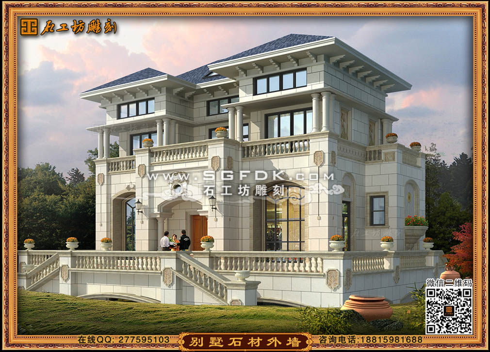 【別墅效果圖設(shè)計(jì)】 【石材外墻施工案例】【歐式大門雕刻】 【歐式浮雕堵】 【石雕羅馬柱】