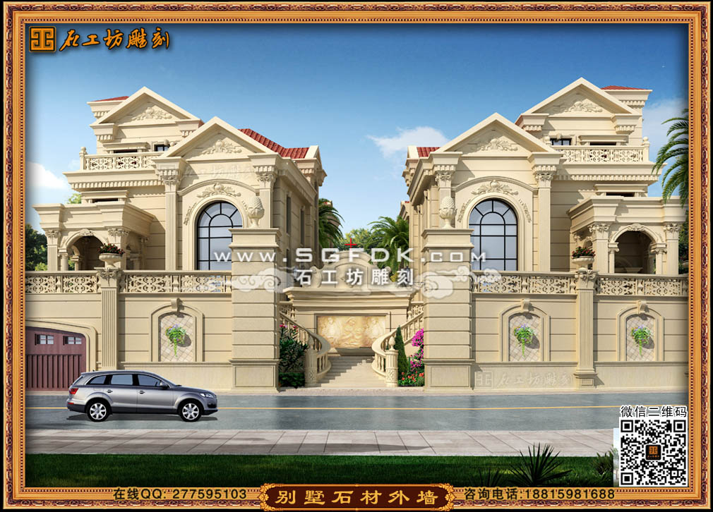 別墅效果圖設(shè)計(jì)】 【石材外墻施工案例】【歐式大門雕刻】 【歐式浮雕堵】 【石雕羅馬柱