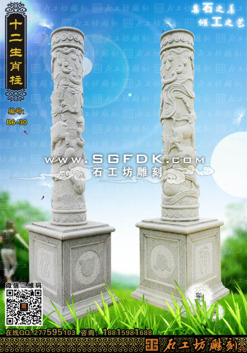 石雕柱生肖柱狗柱豬柱