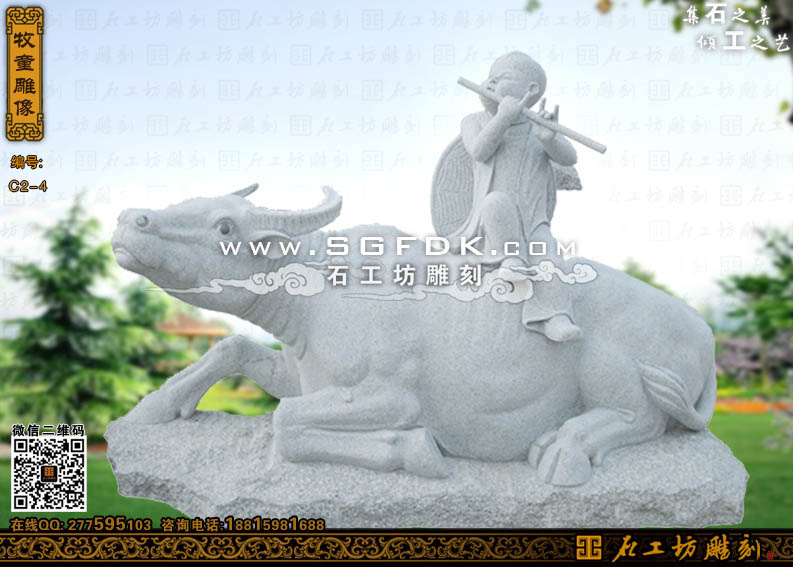石雕牧童雕塑石雕童子