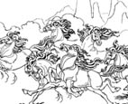 石雕圖紙設(shè)計八駿雄風(fēng)白描圖