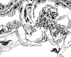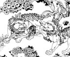 石雕圖紙設(shè)計雙獅獻(xiàn)瑞白描圖